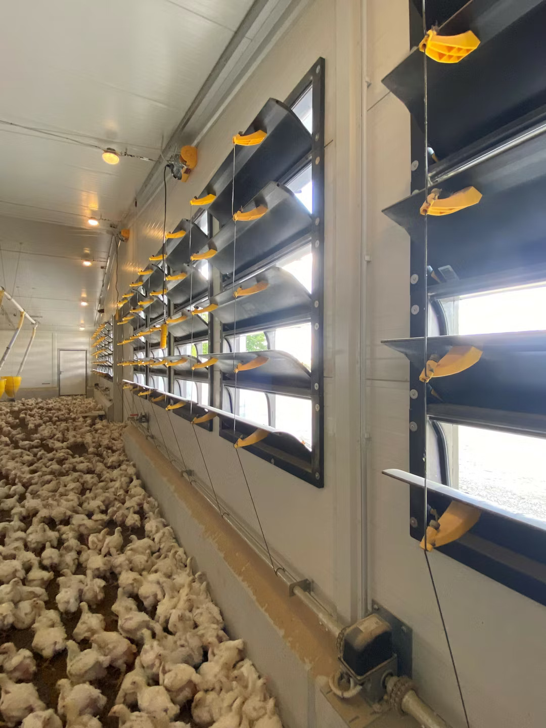 New modern free range broiler farm in Slovenia with high-tech equipment! This house is equipped with the innovative Fortica control system and the high quality products of Tulderhof like black line tunnel air inlets, Superior pop hole doors, Air Equalizers and daylight windows. These chickens have the best conditions to grow in an animal welfare environment.